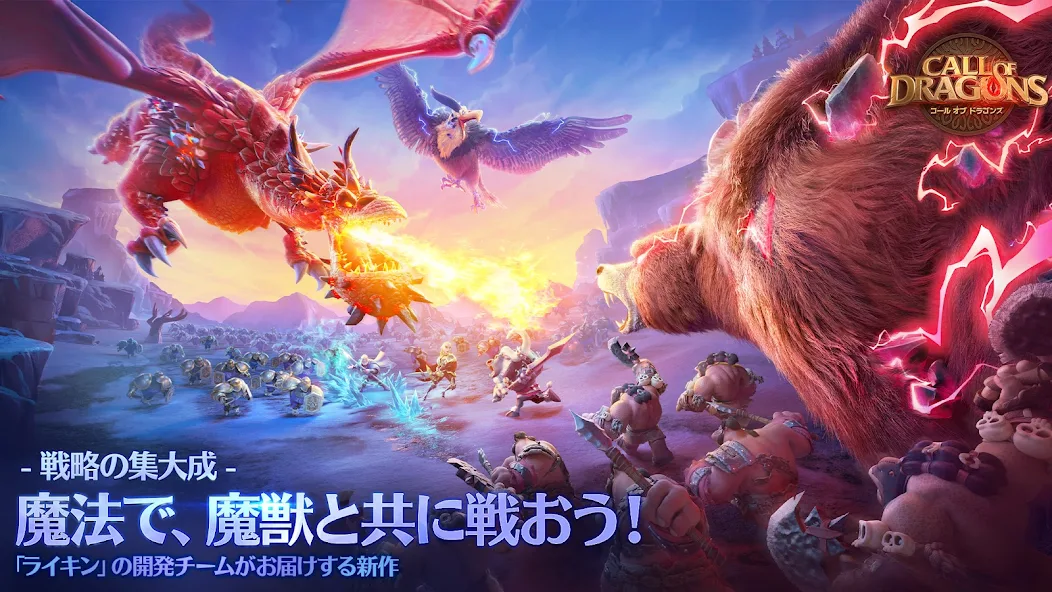 「コール オブ ドラゴンズ」は、リアルタイム戦略バトルから巨大ビヒモスの召喚、同盟テクノロジーの駆使、ヒーロー育成、PvPでの高度な部隊配置にいたるまで、やり込み要素が満載な一作♪ それぞれの戦略を組み合わせて自分だけの戦術を編み出せば、毎回新鮮なワクワクを味わえるよ♪ あなたも今すぐ「コール オブ ドラゴンズ」の世界に飛び込んで、最強の王を目指そう♪